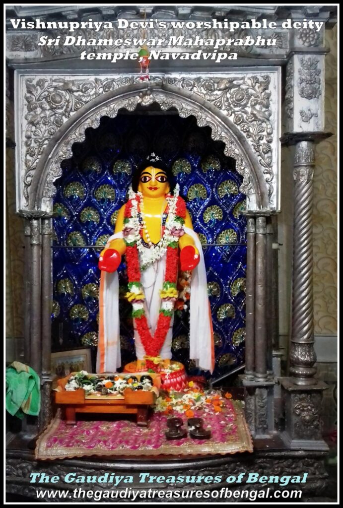 Her brother was her guardian after Sacidevi departed, and ultimately she had a Sri Murti (Deity) of Mahaprabhu, and she would worship Him in that form. And since the time of Visnupriya, that worship is being continued up to the present in the Temple here in Navadvipa known as ‘Mahaprabhura Badi (the house of Mahaprabhu). So this day of the year is connected with her holy memory, and we may achieve her Grace if we honor this time in her name, discussing her pastimes. She will be propitiated, and Sri Caitanyadeva will also be pleased with us, giving us a step forward in our transcendental march towards him.