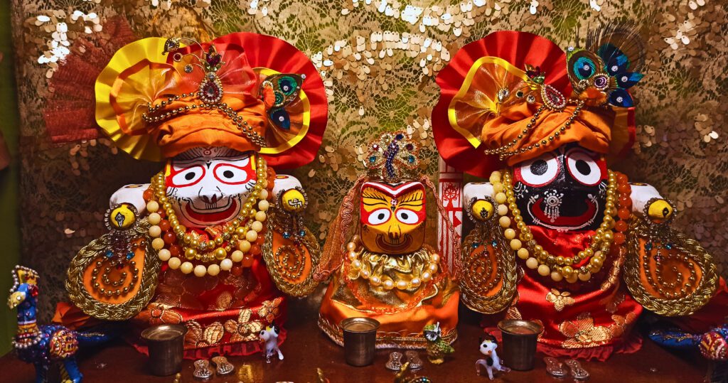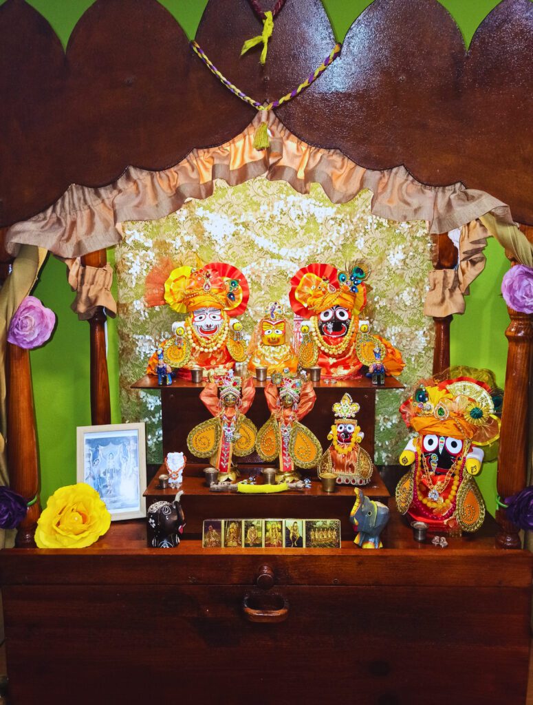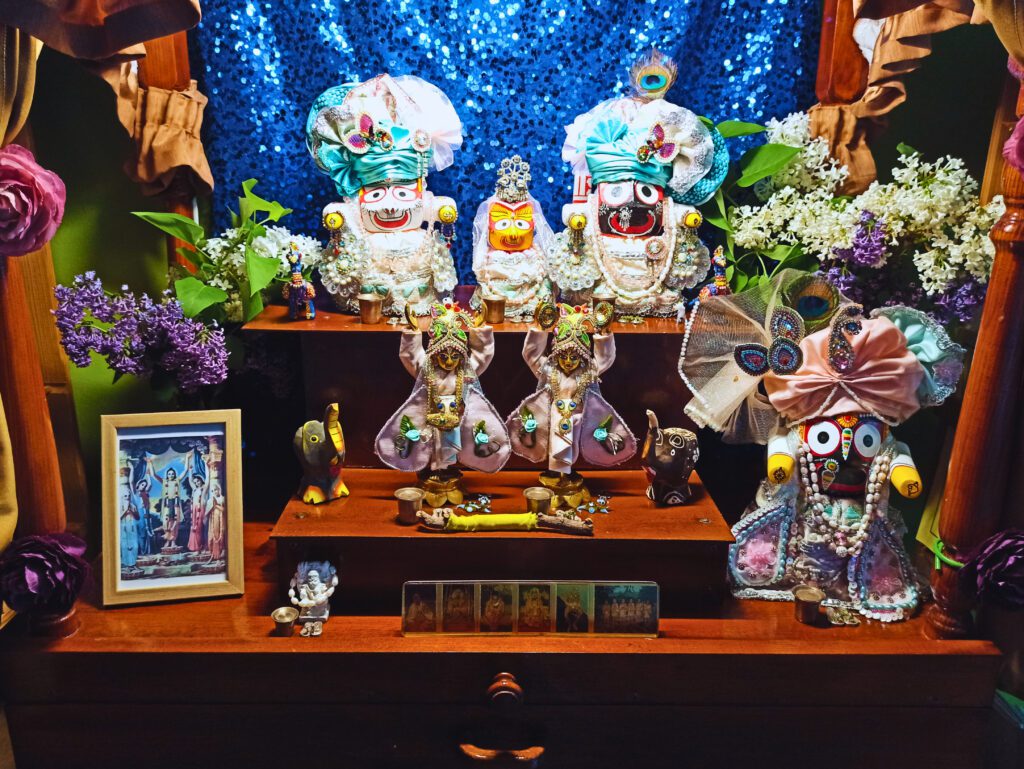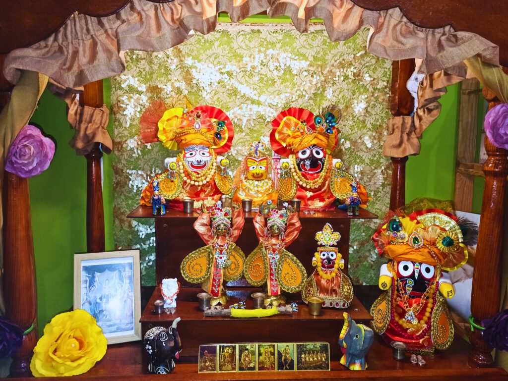 Darshan of Sri Sri Jagannath Baladeva Subhadra Sudarshana-chakra, Sri Sri Gaura-Nitai, Sri Jagannath Patita Pavana, Sri Jagannath Patita Pavana and Sri Nrsimhadeva