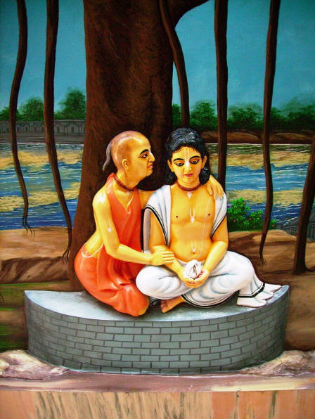In this way, for one month, Sri Ishavara Puri stayed at the house of Sri Gopinatha Acarya. Sri Caitanya Mahaprabhu would constantly invite Ishavra Puri to visit him. And from time to time Isvara Puri would invite Mahaprabhu to visit him.